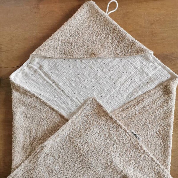 Deze badcape/wikkeldoek is gemaakt van bamboe badstof met hydrofiel broderie.