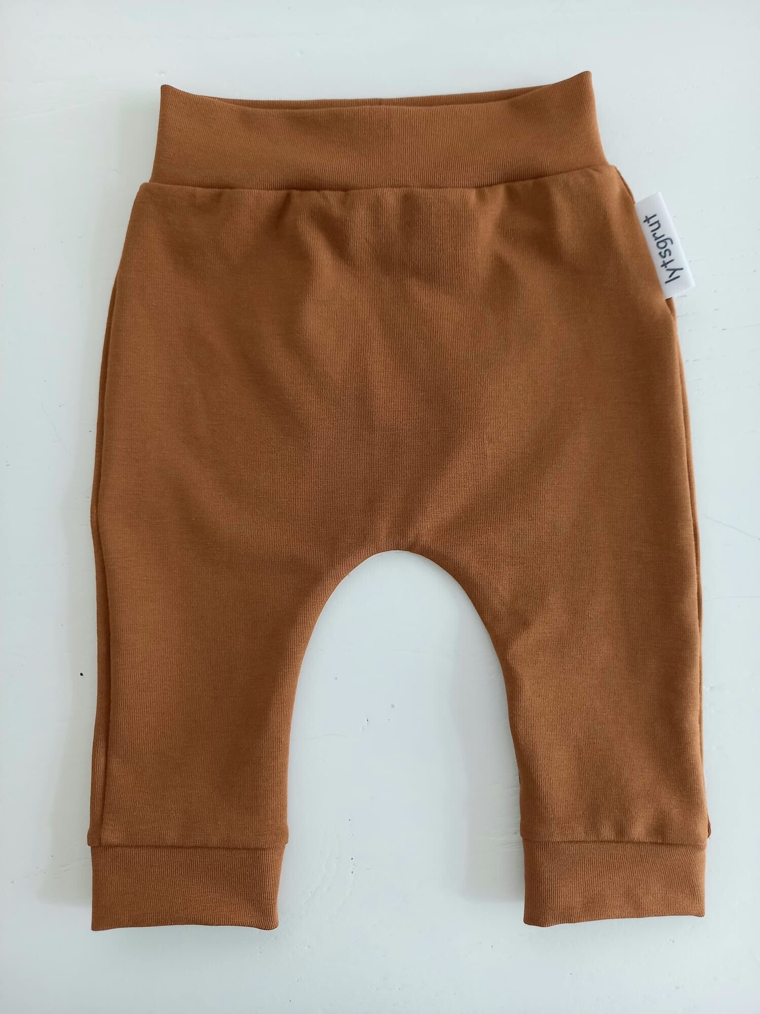 Dit broekje is gemaakt van heerlijk soepelvallende tricot, on de warme kleur Hazel.